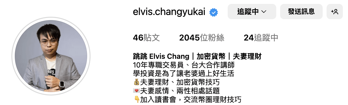畢業於台科大MBA,目前擔任 Web 3.0金融業的品牌行銷主管,熟悉區塊鏈、幣圈投資行銷&教育知識,即使工作環境高壓、高強度,下班後仍維持高質量的斜槓自媒體經營。