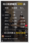許多人都期待,自己能夠靠IG經營自媒體賺錢,而2022年,我成功在保有正職身分的情況下,靠斜槓經營IG,賺到了100萬左右的收入,2023 - 2025 年,這個成績更是逐年翻了3倍。