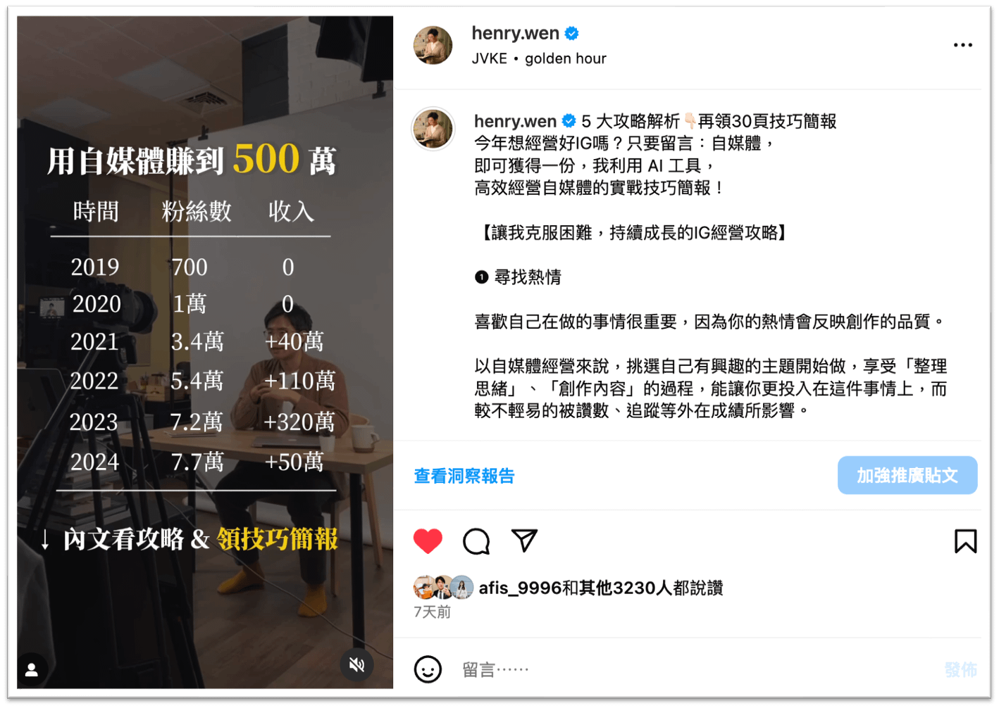 5.經營IG帳號:亨利溫|斜槓 x 理財 x 自媒體教練