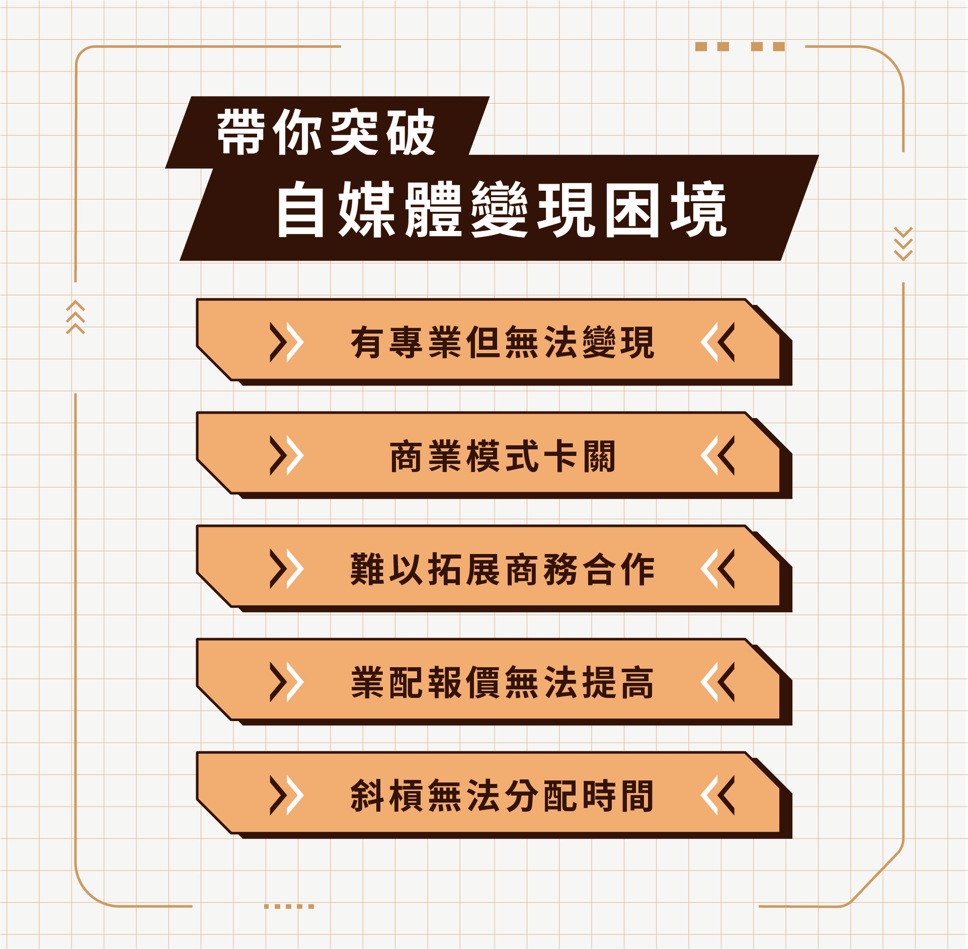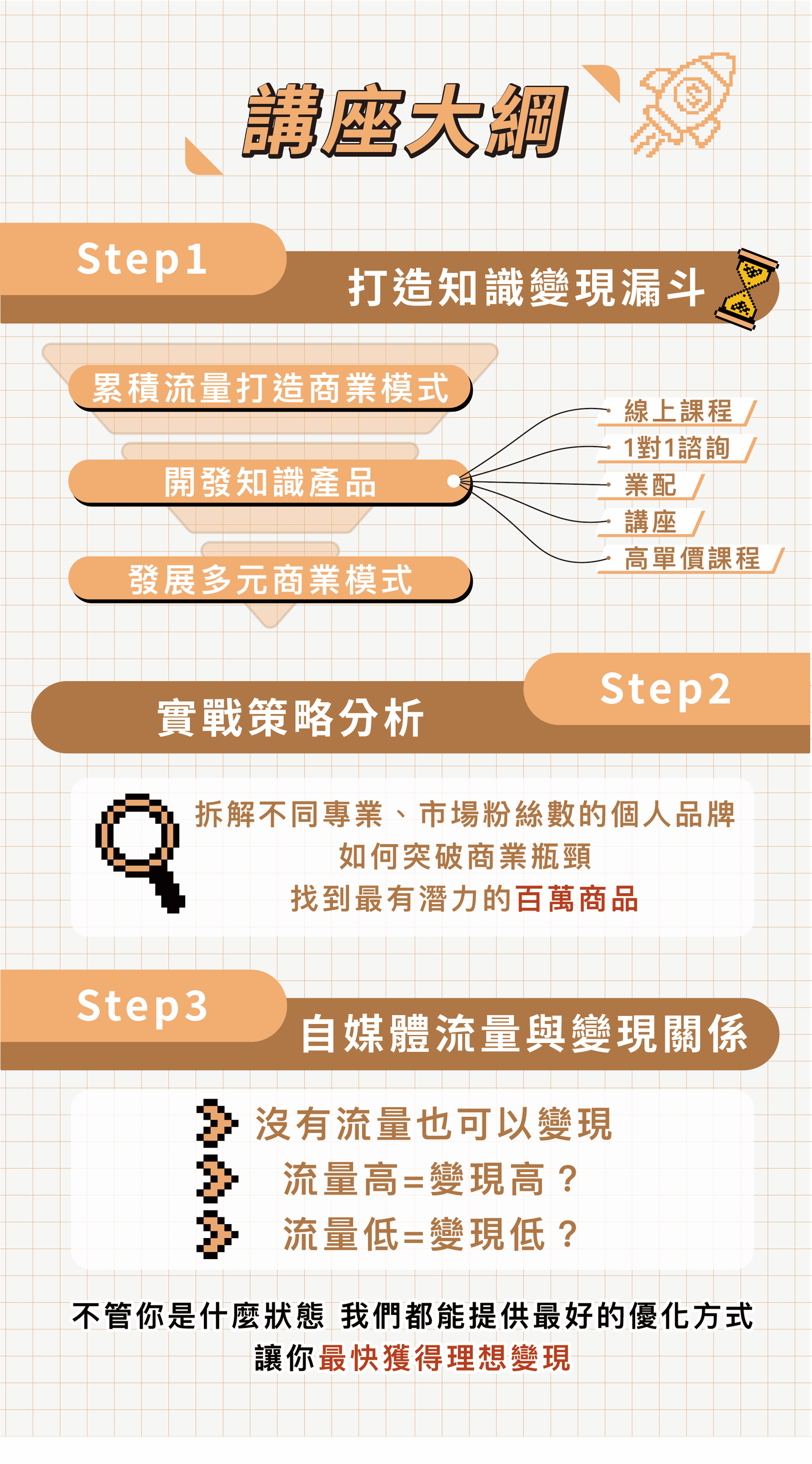 這是一套經過數百位學員驗證過的框架,幫助他們從零開始,打造穩定的自媒體收入,你會帶走一張清晰的知識變現地圖,知道自己現在卡在哪裡、下一步該怎麼做!為什麼你一定要來?