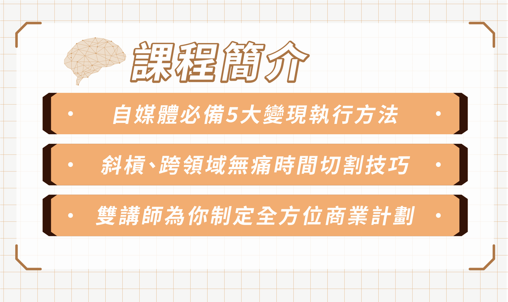 ⚠️本場講座為現場直播,沒有回放,請同學們盡量安排時間到場參與,同時直播現場也會準備加碼商業變現資源呦!(觀看回放影片的學員無法取得加碼內容及精華簡報,還請見諒)